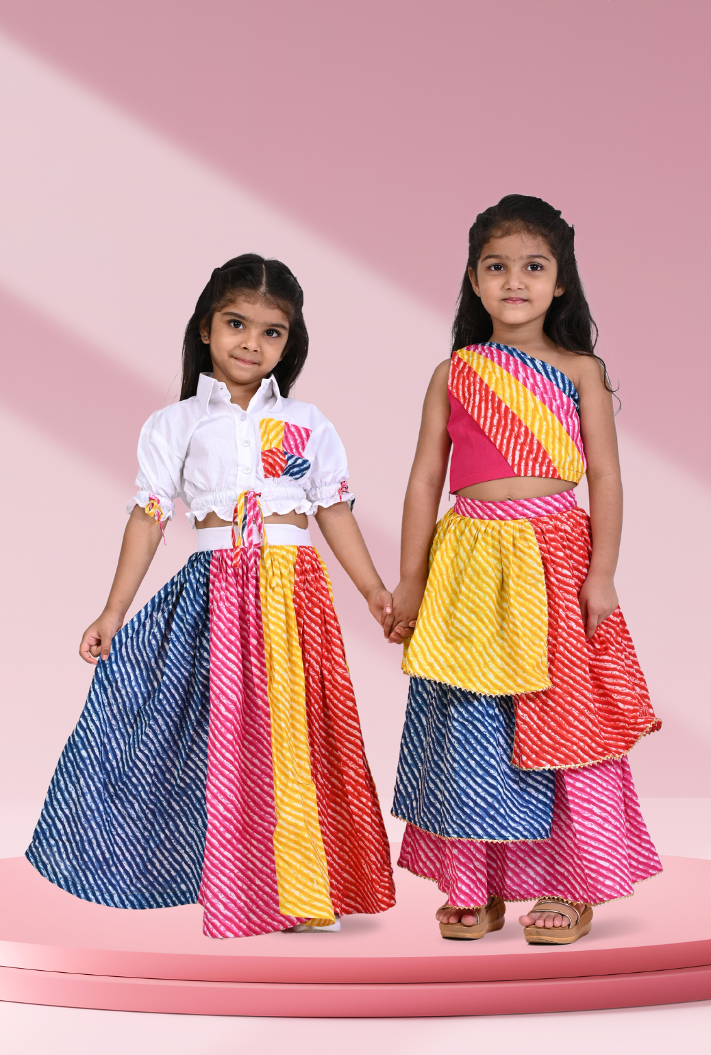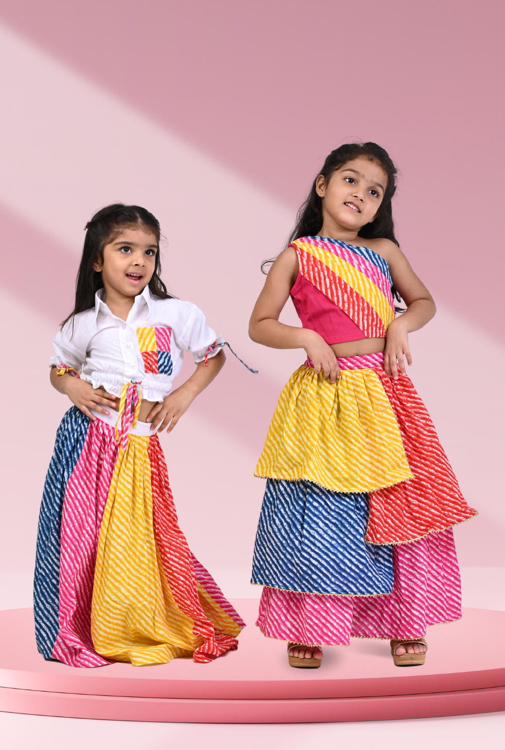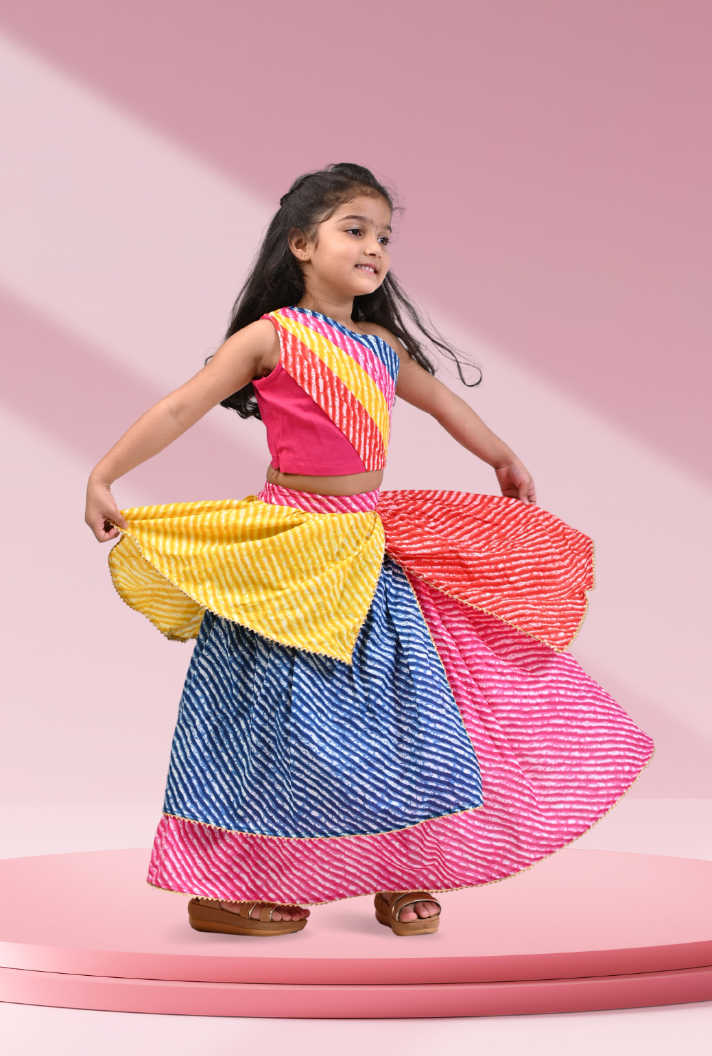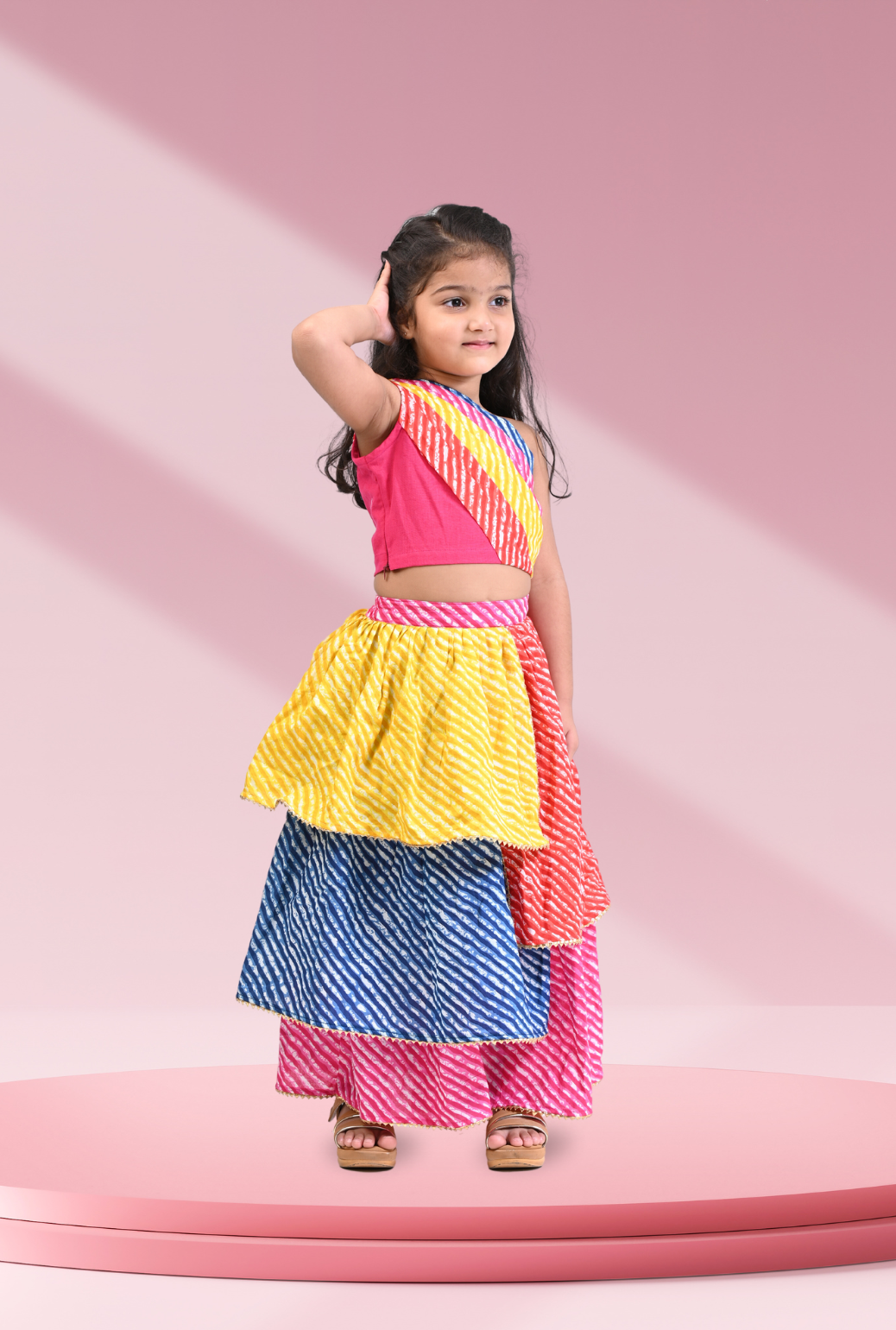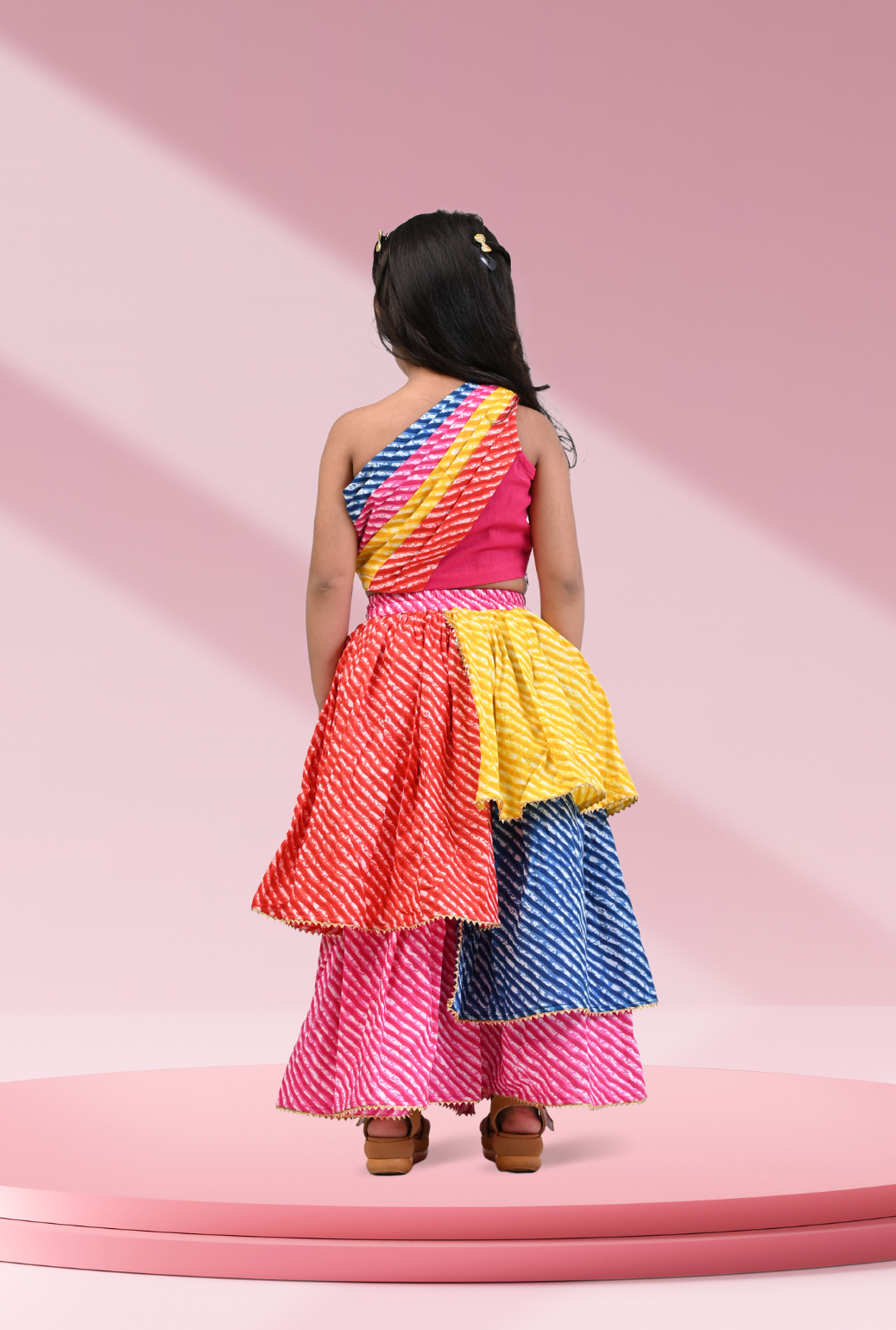 Make your little princess feel like a star with this charming 2 pc dress. One shoulder top designed with multicolor pleats and skirt designed with a tiered ruffles and lace at the hem, makes the dress is perfect for any occasion. The soft and breathable fabric ensures comfort throughout the day.