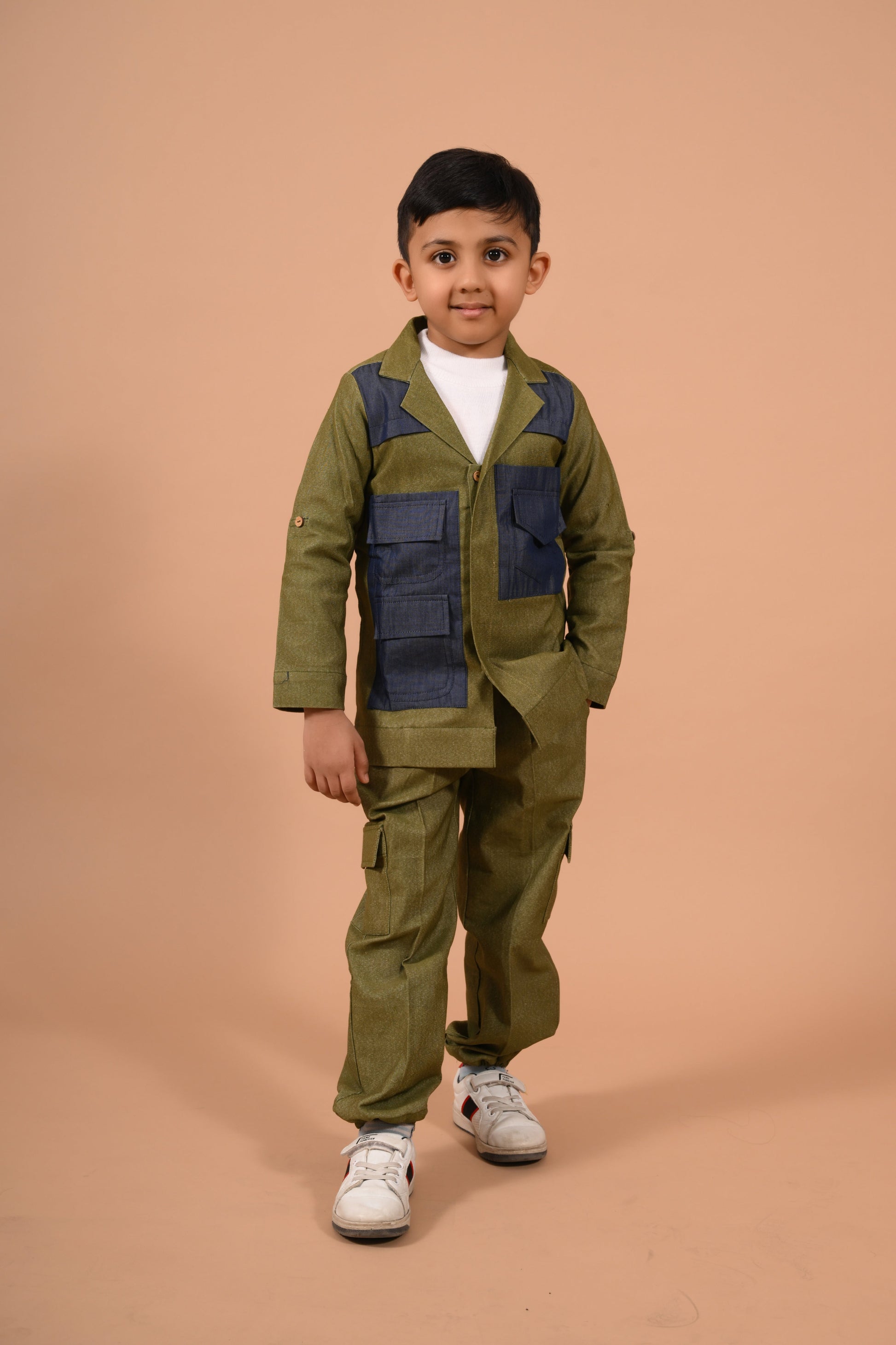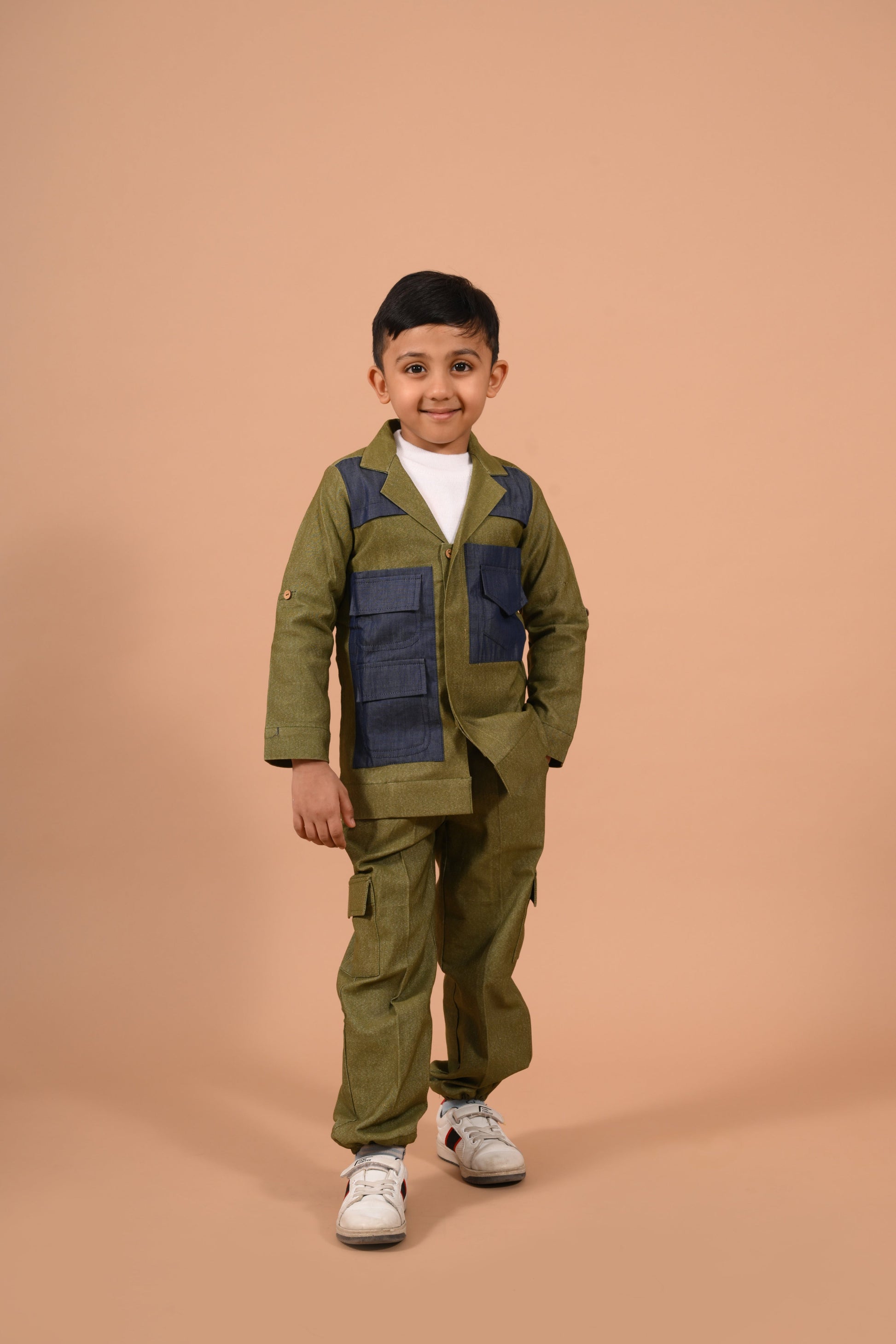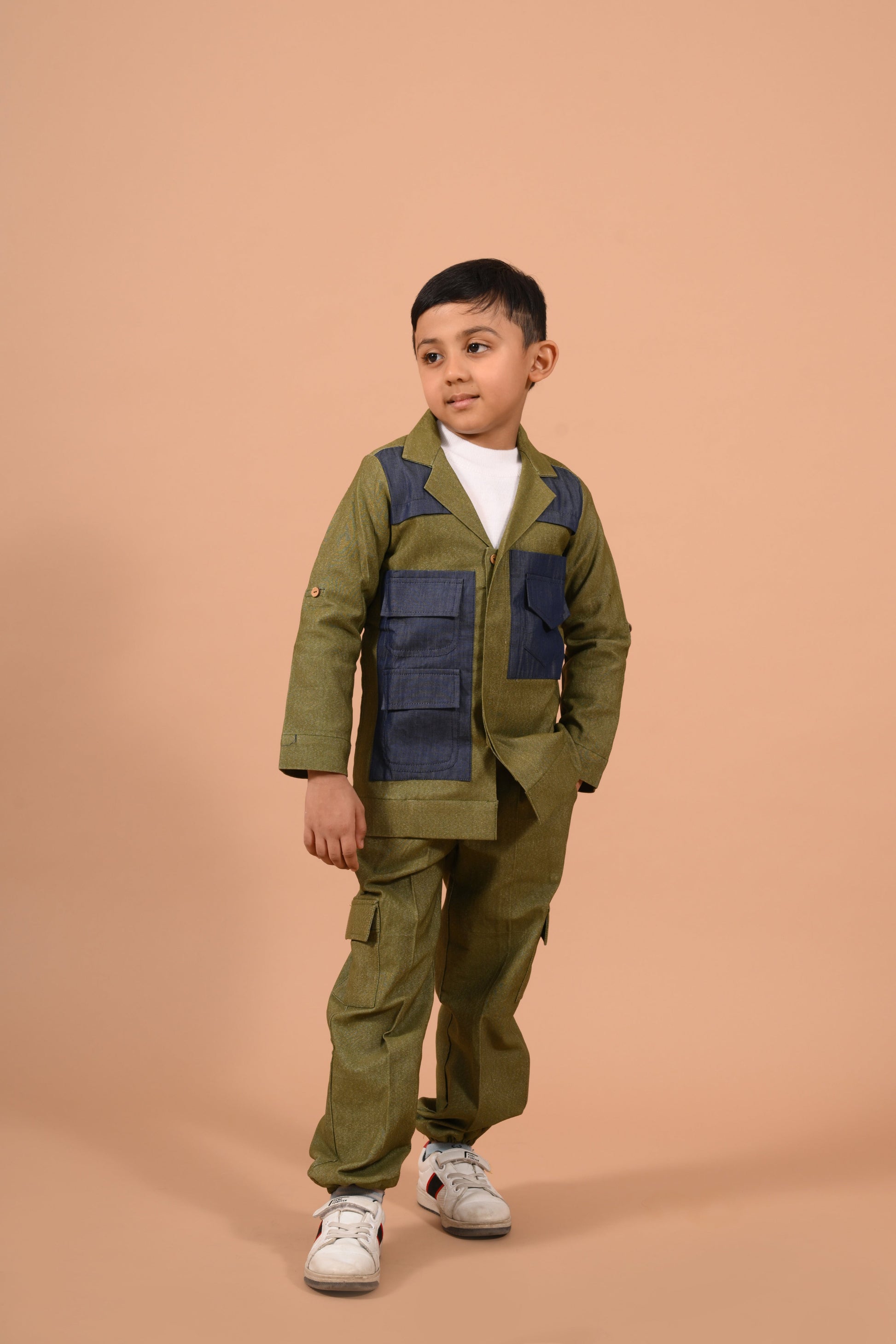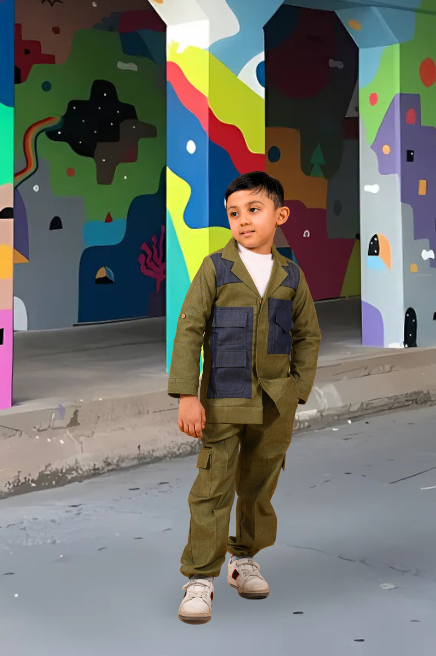 This denim coord is a super cool choice. Shirt comes in regular fit, with long sleeves and a collared neckline. A jogger pant with elasticated waist at back and pockets on side gives a classic look. contrast patches enhance the outfit.