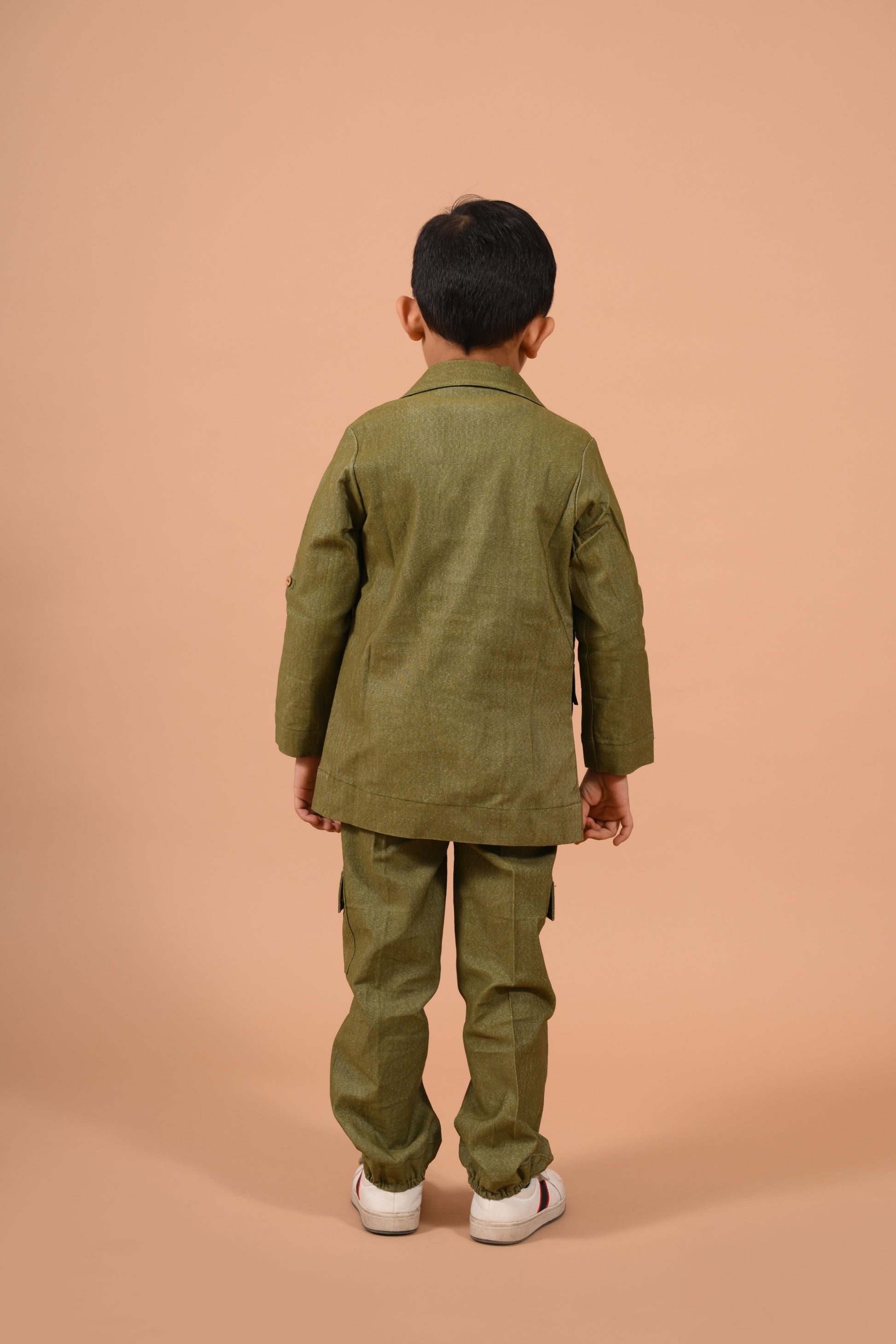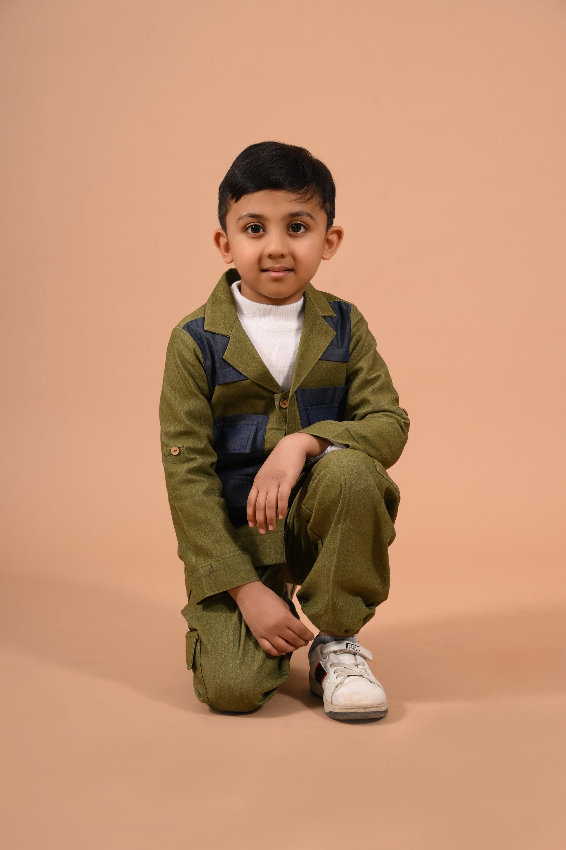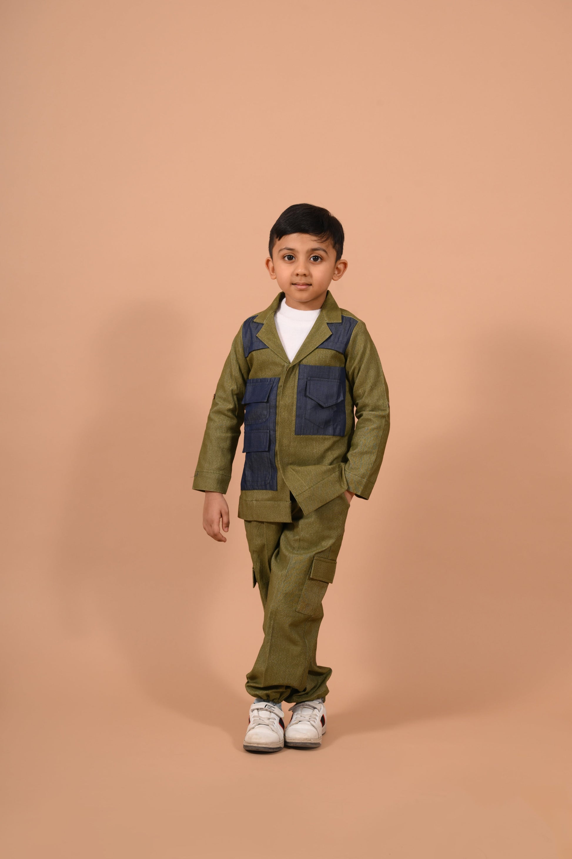 This denim coord is a super cool choice. Shirt comes in regular fit, with long sleeves and a collared neckline. A jogger pant with elasticated waist at back and pockets on side gives a classic look. contrast patches enhance the outfit.