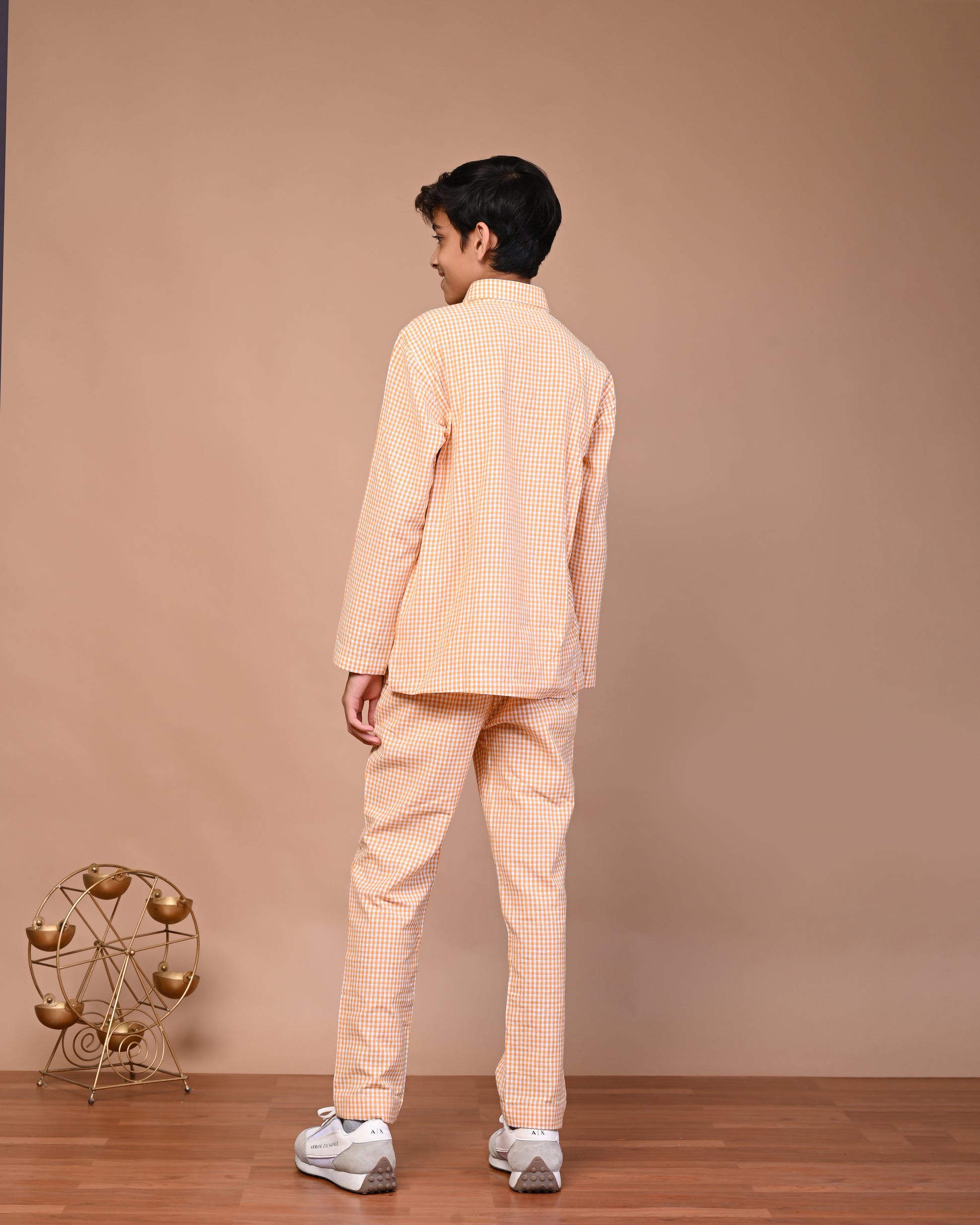 Keep it cool and classy on those weekend days out with this pure cotton shirt and straight pants. Two-piece set, cut to a comfy regular fit. The loop button pattern shirt has big pockets.